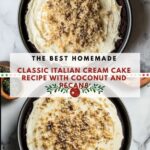This classic Italian Cream Cake is a moist and flavorful dessert featuring a tender crumb enriched with shredded coconut and chopped pecans. Perfectly balanced with buttermilk and vanilla, it’s a delightful treat ideal for celebrations or everyday indulgence.
