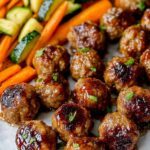 These Korean BBQ Meatballs with Vegetables combine savory, slightly sweet meatballs with vibrant, crisp vegetables for a delicious and easy-to-make meal. Ground beef mixed with classic Korean flavors like soy sauce, sesame oil, ginger, and garlic is baked to perfection and paired with sautéed bell peppers, carrots, and zucchini. Garnished with sesame seeds and green onions, this dish offers a flavorful and colorful dinner solution that is sure to impress.