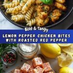This Lemon Pepper Chicken Bites with Roasted Red Pepper Cajun Alfredo Twists recipe features juicy, flavorful chicken bites coated in a crispy flour-cornstarch crust and fried to golden perfection. Paired with creamy, spicy Alfredo pasta infused with roasted red peppers and Cajun seasoning, this dish delights with a balance of zesty lemon, smoky sweetness, and rich cheese flavors, all ready in 30 minutes for a satisfying dinner.