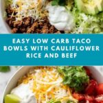 This Low Carb Taco Bowls Recipe keeps well for up to 3 days in the refrigerator. Store the cauliflower rice and spiced beef in separate airtight containers to maintain their textures and flavors. Keep fresh toppings like avocado and tomatoes aside and add them fresh when serving again.