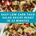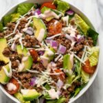 This Low-Carb Taco Salad is a flavorful and satisfying dish perfect for a quick and healthy meal. Featuring seasoned ground beef, fresh vegetables, creamy avocado, and a zesty adobo-lime dressing, it’s a nutritious take on classic taco flavors without the carbs of traditional tortillas.