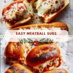 Delicious homemade Meatball Subs made with tender, savory meatballs baked to perfection, smothered in rich marinara sauce, and topped with melted mozzarella cheese. Perfectly assembled in hoagie rolls and finished under the broiler for a gooey, crispy topping.