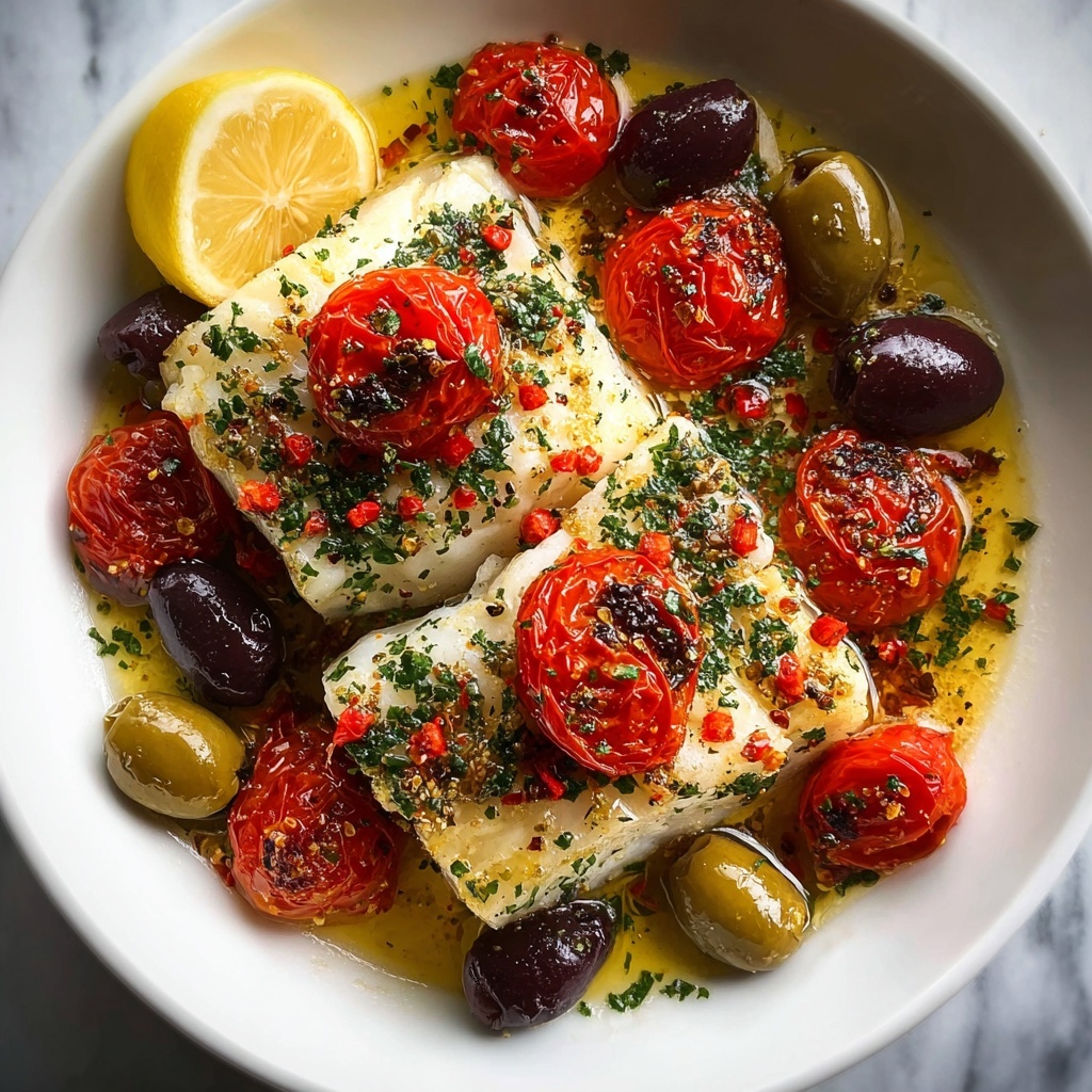 Mediterranean Baked Cod with Olives and Cherry Tomatoes Recipe
