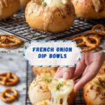 - Serve: Serve the mini French onion dip bread bowls immediately alongside the toasted bread cubes and extra pretzels for dipping.