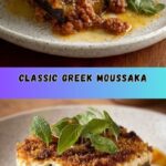 This traditional Greek Moussaka recipe features layers of tender eggplant slices, flavorful ground beef simmered in a rich tomato sauce, and a creamy béchamel topping baked to golden perfection. A classic eggplant lasagna that brings Mediterranean warmth to your table, perfect for family dinners or special occasions.