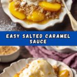 - Bake: Place the dish in the preheated oven and bake for 45-50 minutes until the topping is golden brown and peach juices are bubbling around the edges.