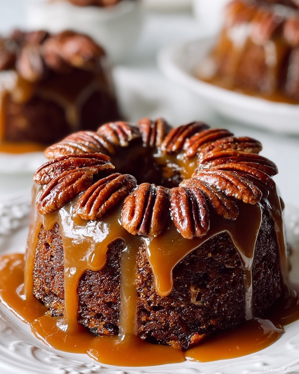 Want to impress your guests even more? Serve individual slices on vintage floral plates, accompanied by a small ramekin of caramel sauce for drizzling. Or consider cutting the cake into small squares and stacking them in a dessert tower for a rustic yet elegant presentation. You can also garnish each slice with a whole toasted pecan or an edible flower for a beautiful finishing touch.