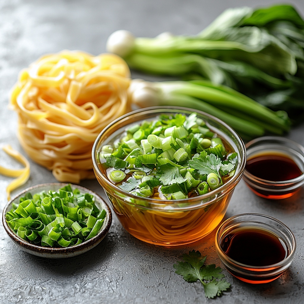 Gathering the right ingredients for this Quick and Easy Chinese Noodle Soup Recipe is delightfully straightforward. Each element plays a vital role in creating a broth that’s flavorful and noodles that are perfectly tender, while the fresh greens add a pop of color and a satisfying crunch.