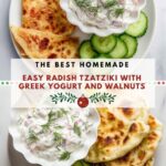 A refreshing twist on classic tzatziki, this Radish Tzatziki combines creamy Greek yogurt with crunchy radishes and toasted walnuts for a zesty and textured dip. Enhanced with fresh dill, lemon juice, and olive oil, it makes a vibrant accompaniment to veggies, pita bread, or grilled dishes. Quick to prepare and perfect for a light snack or appetizer.