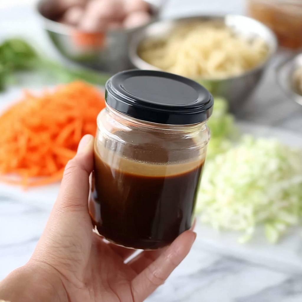 Finish by adding the toasted sesame oil and ground white pepper. Sesame oil gives the sauce its signature nutty aroma, while the white pepper adds a gentle kick. Shake or whisk everything again so the flavors are evenly mixed and ready to wow your taste buds.
