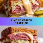 A classic Reuben Sandwich recipe featuring homemade pastrami, Swiss cheese, tangy sauerkraut, and a spicy, creamy dressing, all piled between slices of light rye bread and pan-grilled to perfection. This hearty sandwich combines savory, tangy, and spicy flavors for a delicious and satisfying meal.