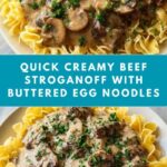 While the stroganoff simmers, cook the wide egg noodles according to the package instructions. Once drained, toss the noodles with 2 tablespoons of butter. This little addition makes the noodles silky and rich, creating the perfect partner for the sauce.