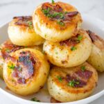 Deliciously crispy roasted potatoes stuffed with savory bacon and creamy butter, seasoned with olive oil, salt, and pepper, then baked to golden perfection. This easy-to-make side dish combines rich flavors and a satisfying texture, perfect for any meal.