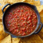 This Roasted Tomato Salsa is a vibrant and flavorful homemade salsa made by roasting a blend of tomatoes, jalapenos, bell pepper, onions, and garlic until tender and slightly charred. Blended with fresh cilantro and seasoned with sea salt, this salsa offers a smoky depth and perfect balance of heat and freshness. Ideal as a dip or topping, it’s easy to prepare and can be stored refrigerated or frozen.