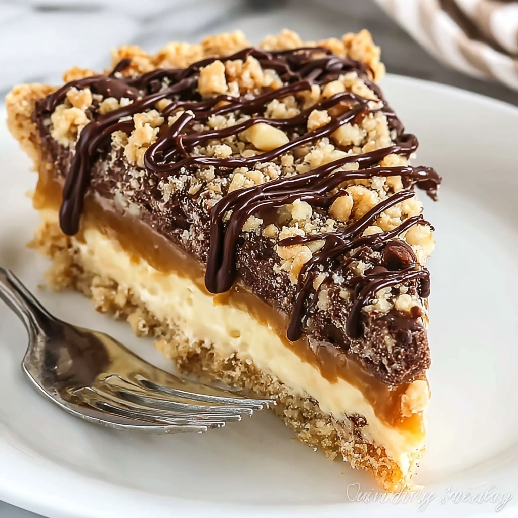 To elevate your presentation, consider sprinkling a few toasted coconut flakes or crushed toasted pecans on top just after drizzling the melted chocolate. Fresh berries on the side can add a bright, tangy contrast that complements the sweet caramel and chocolate layers beautifully.