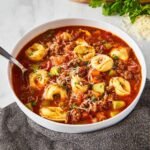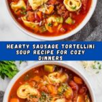 A hearty and comforting Sausage Tortellini Soup featuring browned Italian sausage, a medley of sautéed vegetables, rich tomato broth, and tender cheese tortellini. This easy-to-make soup combines Italian flavors with creamy goodness, perfect for a cozy meal.