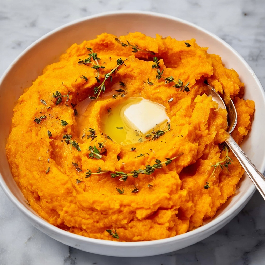 If you want to impress your guests, try serving these mashed sweet potatoes in individual ramekins topped with a sprinkle of toasted nuts or caramelized onions. You could even swirl in a bit of maple syrup for an extra hint of sweetness that complements the herbs beautifully while making it feel just a bit more festive.