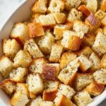 Crispy and flavorful homemade croutons made from cubed bread tossed in olive oil and herbs, then baked to golden perfection. Perfect for salads, soups, or as a crunchy snack.