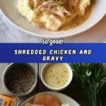 - Serve: Serve the hot shredded chicken and gravy over mashed potatoes, rice, or noodles. Garnish with chopped chives or parsley, if desired, for a fresh finish.