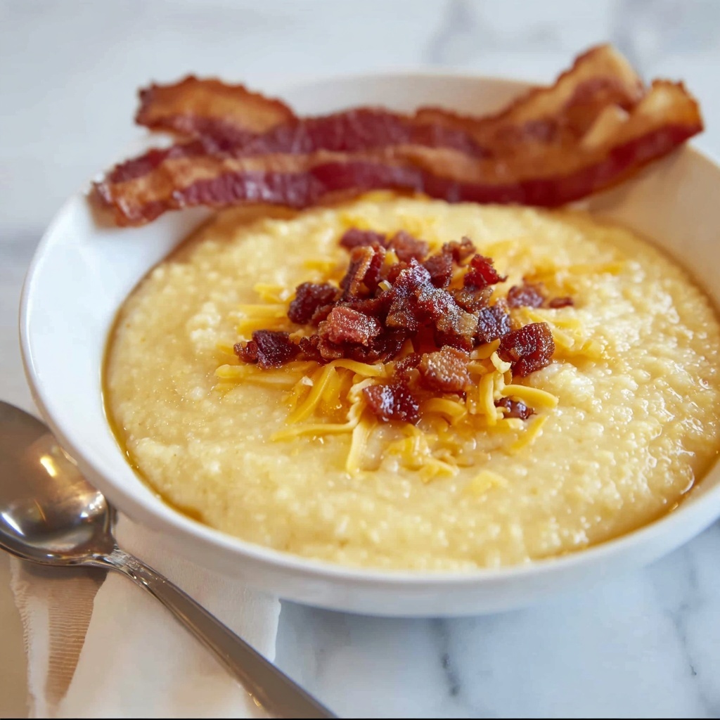 Elevate your cheesy grits with a pat of fresh butter on top or a sprinkle of additional shredded cheese for an extra decadent touch. Crumbled crispy bacon also pairs beautifully, adding a salty crunch that contrasts perfectly with the creaminess.