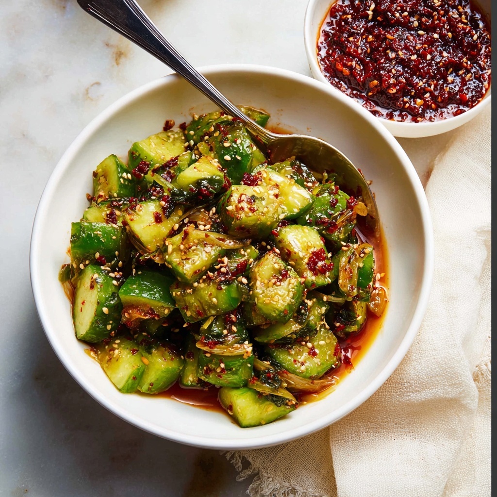 This Spicy Asian Cucumber Salad is a refreshing and zesty side dish bursting with bold flavors. Featuring crisp cucumbers combined with a tangy rice vinegar dressing, aromatic sesame oil, and a fiery kick from chili crisp, this salad is perfect for cooling down spicy meals or adding a vibrant crunch to any table setting. Toasted sesame seeds and fresh green onions add texture and depth, making it an easy yet sophisticated accompaniment for Asian-inspired meals.