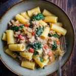 If you’re searching for a dish that delivers big flavor with a cozy, satisfying vibe, the Spicy Paccheri with Sausage & Greens Recipe is an absolute must-try. This recipe is a brilliant combination of hearty paccheri pasta, spicy Italian sausage, and vibrant fresh greens, all brought together with a garlicky, slightly fiery tomato sauce. It’s the kind of meal that feels like a warm hug on a plate, perfect for impressing guests or simply treating yourself to a special night in. The textures—from the tender pasta to the savory sausage and wilted greens—make every bite a delicious adventure.