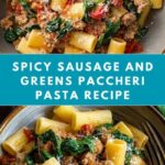 Spicy Paccheri with Sausage & Greens is a hearty and flavorful Italian pasta dish featuring large tubular paccheri pasta tossed with spicy Italian sausage, fresh greens like spinach or kale, garlic, tomatoes, and red pepper flakes. This recipe balances savory sausage with the freshness of greens and a mild heat that can be adjusted to taste, finished with Parmesan cheese and basil for a classic Italian touch.