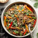 A vibrant and flavorful Spicy Peanut Soba Noodle Salad featuring tender chicken breast, crunchy vegetables, and a creamy, spicy peanut sauce. This dish combines the nuttiness of peanut butter with bold chili and fresh herbs for a refreshing and satisfying meal that can be served chilled or at room temperature.