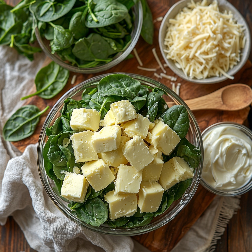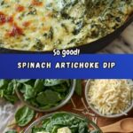 A creamy and cheesy Spinach Artichoke Dip baked to bubbly perfection, combining tender spinach, tangy artichokes, and a rich blend of cheeses. Perfect for parties and gatherings as a warm, savory appetizer served with chips, bread, or vegetables.