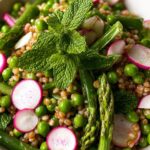 A fresh and vibrant Spring Asparagus and Grain Salad combining tender-crisp asparagus, sweet peas, nutty brown rice, and peppery radishes tossed with fragrant herbs and Parmesan, finished with a zesty lemon dressing. Perfect as a light, healthy side or a vegetarian main.