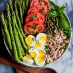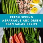 A fresh and vibrant Spring Asparagus and Green Bean Salad featuring tender-crisp asparagus and green beans tossed with a zesty lemon-Dijon dressing, fresh herbs, tomatoes, capers, and topped with perfectly hard-boiled eggs and oil-packed tuna for a flavorful and satisfying dish.
