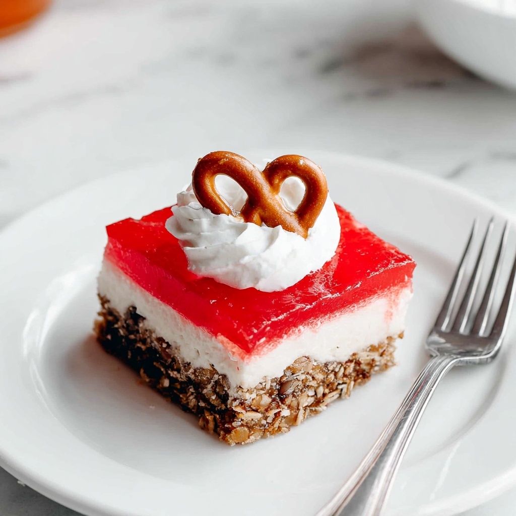 Adding a few simple garnishes can elevate this dessert visually and flavor-wise. Consider topping slices with a dollop of whipped cream and a fresh strawberry slice for an extra touch of elegance and freshness. A light sprinkle of crushed pretzels on top also echoes the salty-crispy crust, adding a delightful crunch with every bite.