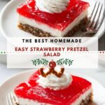 - Serve: After chilling, slice the strawberry pretzel salad into 12 servings and enjoy!