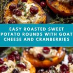 Serving this Sweet Potato Rounds with Goat Cheese & Cranberries Recipe as elegant canapés at your next gathering is a fantastic idea. Arrange them on a long platter with alternating dabs of cheese and clustered cranberries, then drizzle balsamic glaze artistically for a professional, mouth-watering presentation that guests will be talking about.