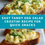 This Tangy Egg Salad Crostini recipe features a creamy and flavorful egg salad made with mayonnaise, Dijon mustard, lemon juice, and fresh chives, served atop crispy toasted baguette slices. Perfect for a light appetizer or snack, these easy-to-make crostinis combine tangy and savory flavors with a satisfying crunch.