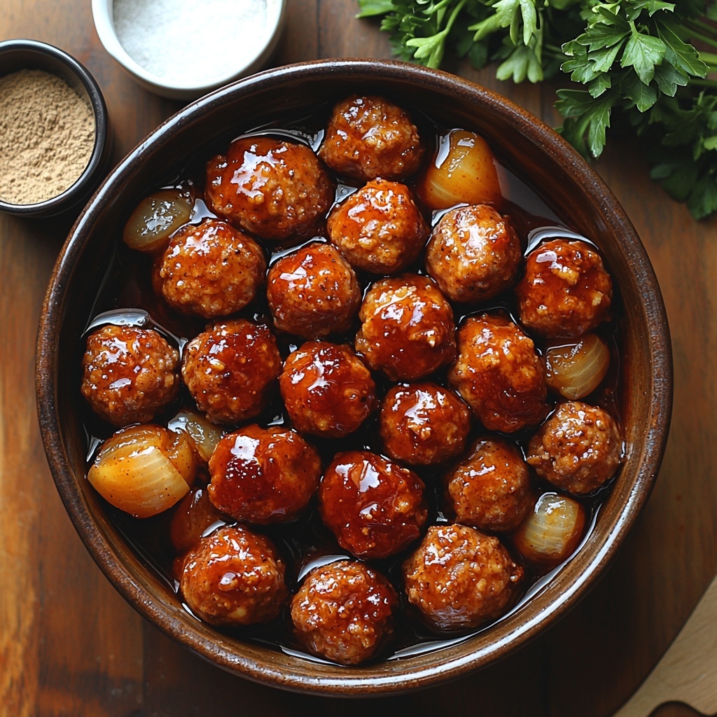 A comforting and easy-to-make recipe featuring frozen meatballs cooked in a rich, savory brown gravy with onion soup mix, slow-cooked to perfection. Perfect for a hearty family meal served over mashed potatoes or egg noodles.