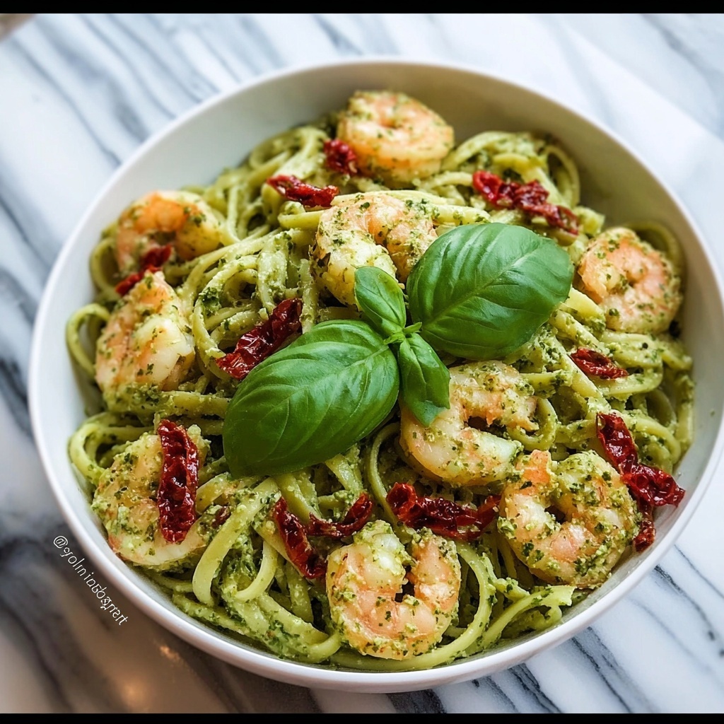 Reheat leftovers gently in a skillet over low heat, adding a bit of olive oil or pasta water to loosen the sauce. Avoid microwaving aggressively, as it can dry out the shrimp and cause the pesto to lose its vibrant flavor.
