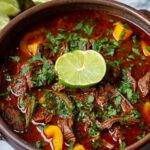 Gathering just a handful of authentic, high-quality ingredients creates a dish that’s unbelievably flavorful. Each ingredient plays a vital role—from the deep smoky warmth of the dried chilies to the savory tenderness of the beef chuck, these essentials combine to form the unforgettable base of this classic recipe.