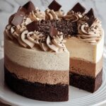 This Tuxedo Cake is a decadent triple chocolate mousse cake that layers rich dark, milk, and white chocolate mousses between moist chocolate cake layers. Perfect for special occasions, this elegant dessert combines the smooth texture of mousse with a tender cake base, topped with optional chocolate shavings or fresh berries for a stunning finish.