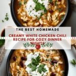 This creamy White Chicken Chili features shredded chicken, white beans, and a blend of spices simmered to perfection with rich cream and Monterey Jack cheese. It’s a comforting and flavorful dish perfect for cozy dinners or gatherings.