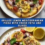 A bright and flavorful Mediterranean grilled lemon pizza featuring a crispy, charred crust topped with tangy lemon slices, crumbled feta, Kalamata olives, cherry tomatoes, and melted mozzarella. Perfect for grilling season, this pizza combines fresh herbs and zesty citrus for a unique twist on a classic favorite.