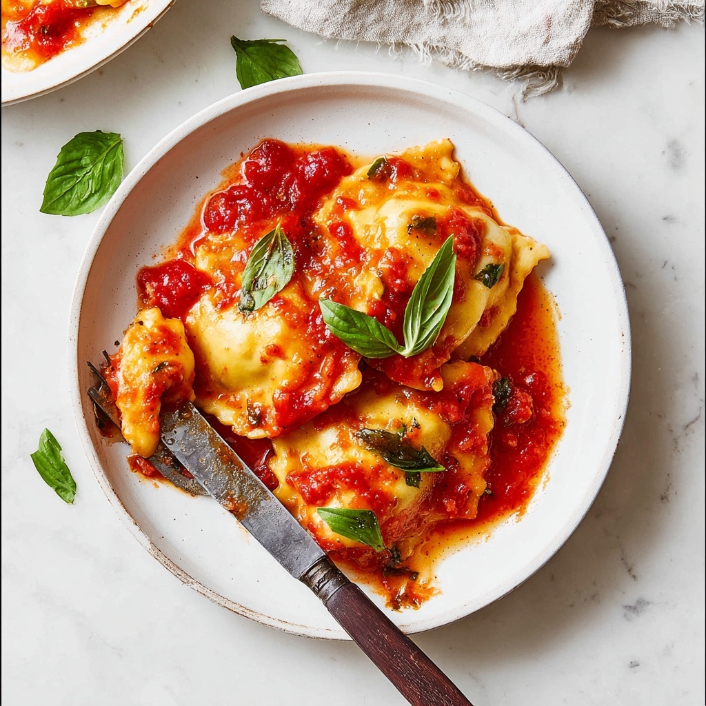 You can serve the ravioli in individual shallow bowls to keep the sauce contained and make serving easier. If you’re impressing guests, try plating the ravioli on a wooden board garnished with fresh basil sprigs and grated cheese on the side. For a cozy family dinner, a rustic casserole dish right from the oven invites everyone to dig in together.